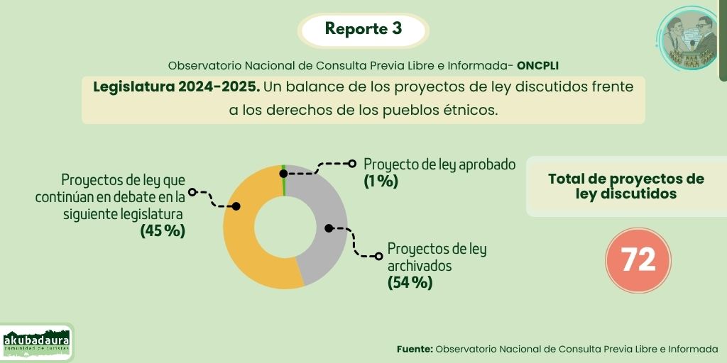 Akubadaura publica en su tercer reporte del Observatorio Nacional de Consulta Previa Libre e Informada– ONCPLI, donde se hace el primer análisis de seguimiento a la agenda legislativa 2024-2025 En Colombia, el Congreso de la República discute decenas de proyectos de ley en cada periodo legislativo. Muchos de estos proyectos —aunque no lo digan de […]